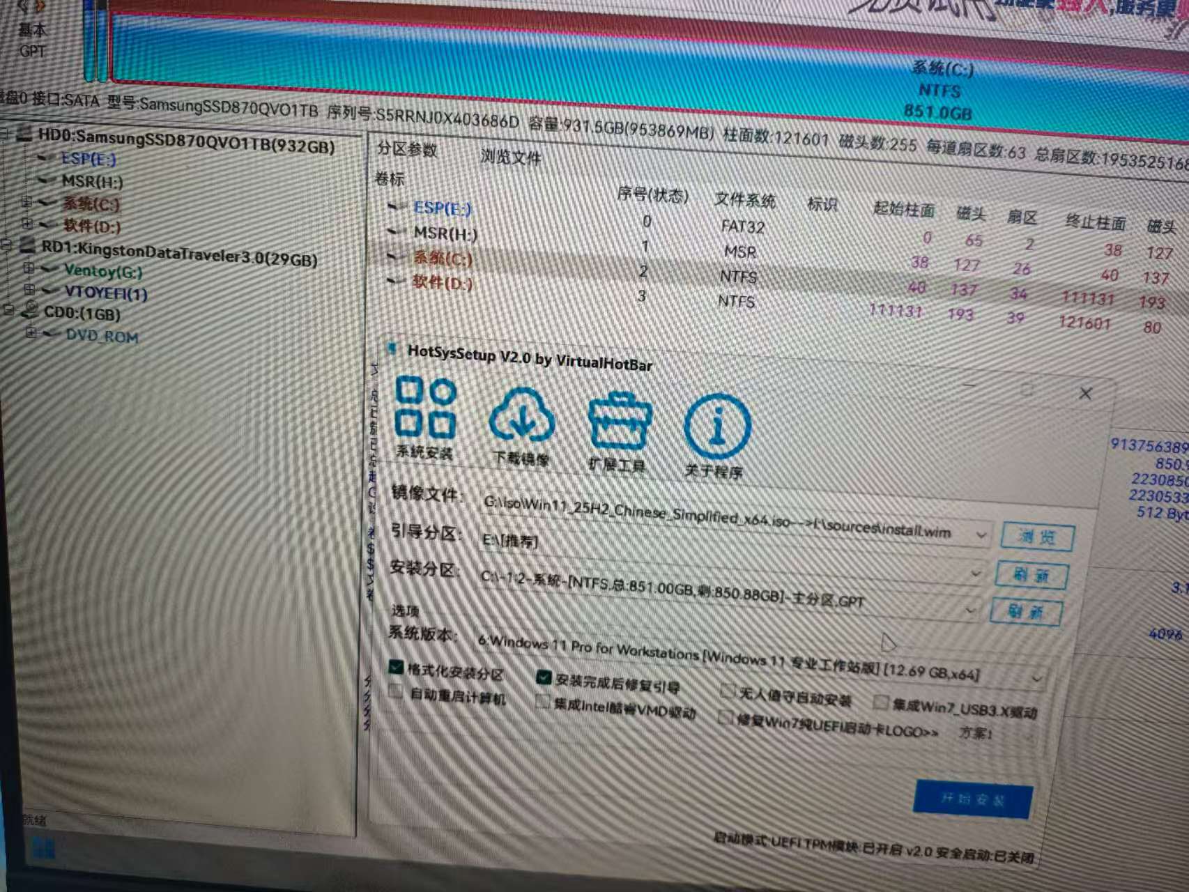 然后用hotsysSetup 来按照, 注意引导分区是esp的盘符。然后点击安装就可以了。